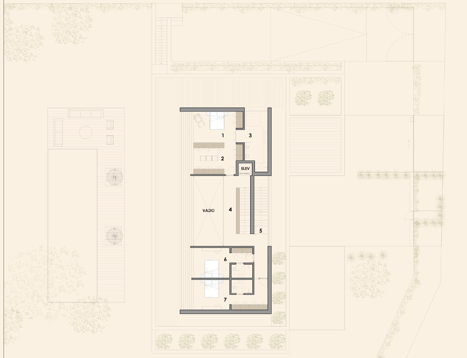 On the top floor of the villa, the experience continues with a magnificient lounge area, where a pool invites you to appreciate the landscape. Surrounded by a green paradise, this elevated retreat offers stunning panoramic views, allowing you to disconnect from the world.
